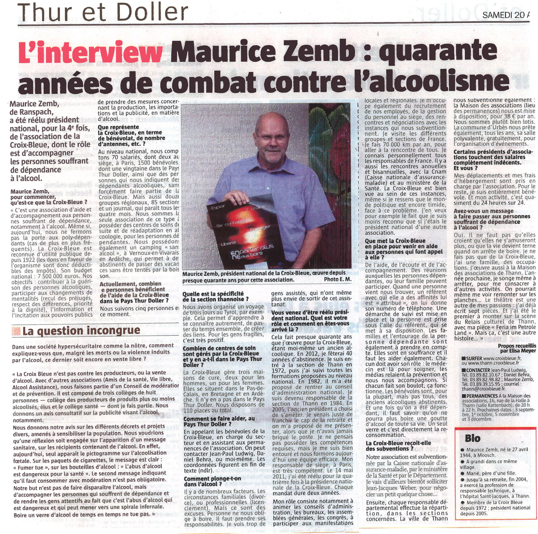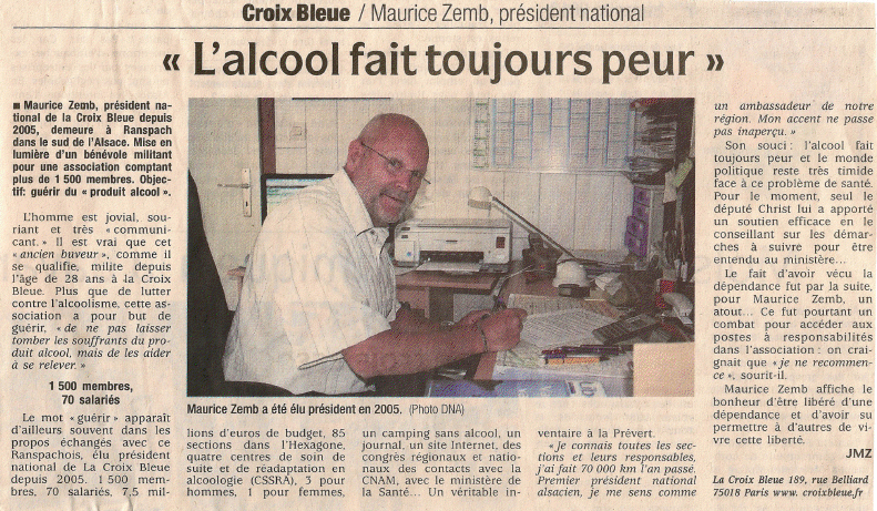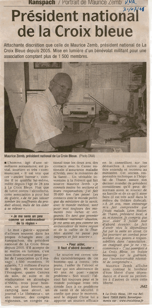 La presse locale et régionale parlent de la Croix Bleue. Différentes interventions du Président National Maurice ZEMB